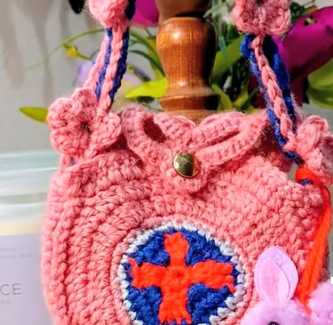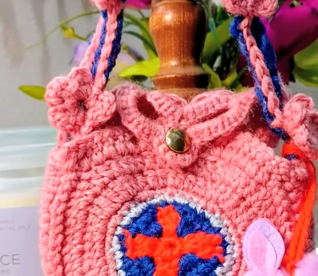 This small crochet granny bag with crosses on both sides is a timeless handmade accessory that blends classic granny square crochet with meaningful embellishment and a decorative flower strap. Designed for both beauty and function, this embellished mini granny bag is yet spacious making it a popular project for crochet lovers searching for a unique yet practical pattern.
